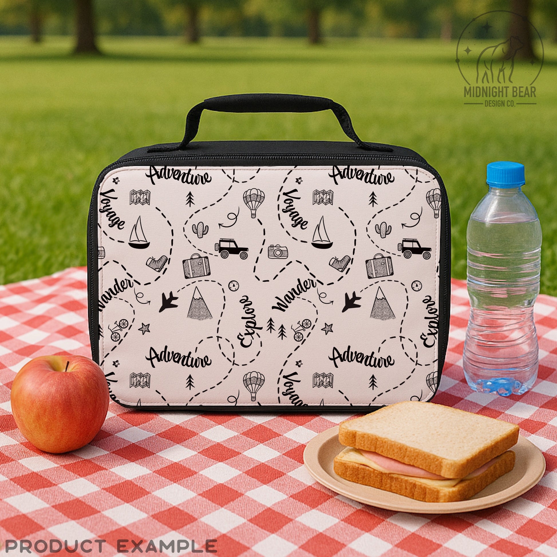 Adventure Doodle Seamless Pattern | Travel Digital Paper, Wanderlust Fabric Design, Explore & Voyage Scrapbook Background, Hand drawn