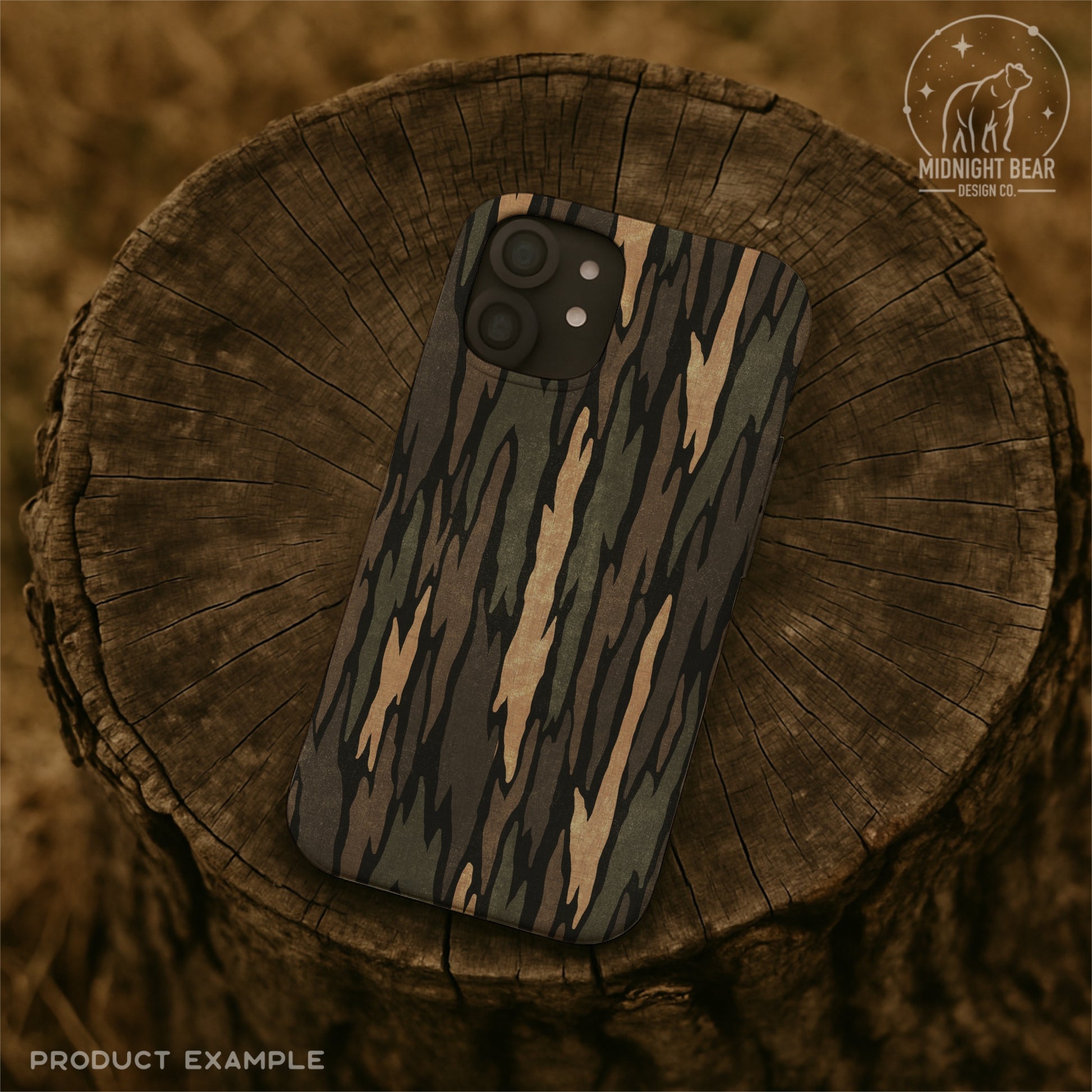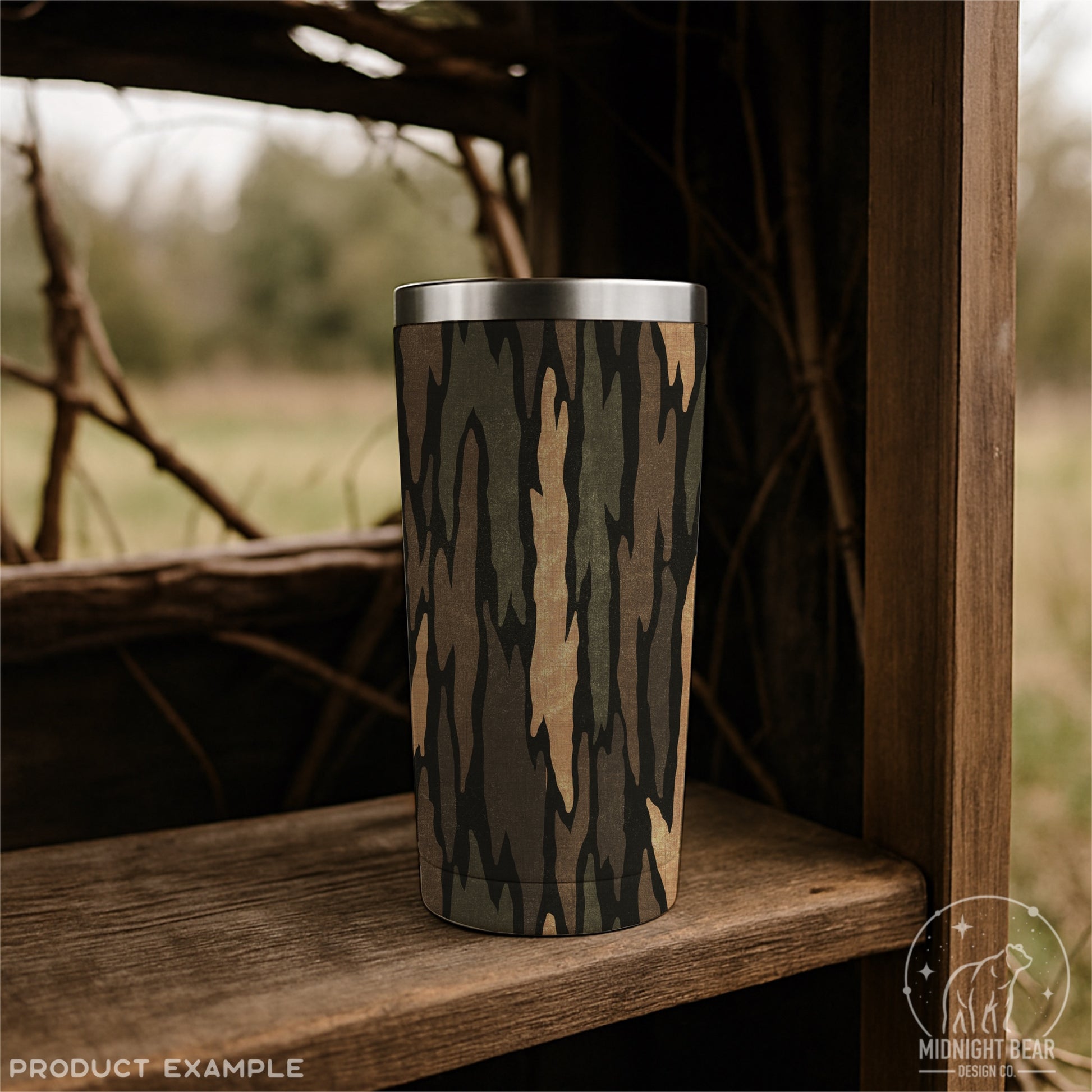 Bring the rugged spirit of the woods into your projects with this Bark Camo Seamless Pattern! Inspired by classic timber camouflage, this design features elongated organic shapes in rich woodland tones—deep browns, olive greens, blacks, and warm tan—creating a vertical bark-like texture that blends seamlessly with outdoor themes.