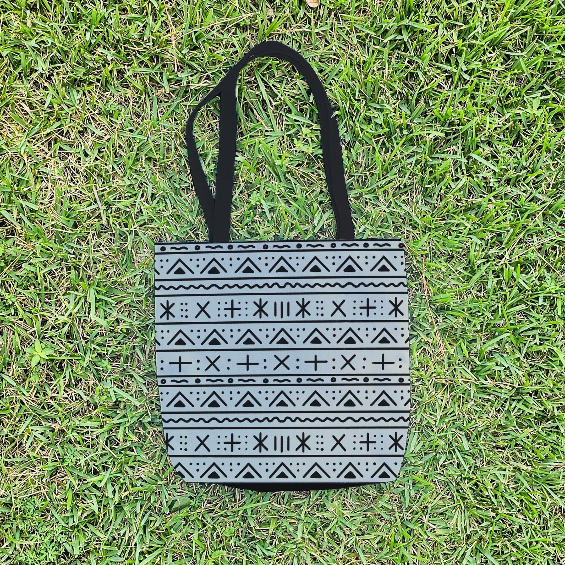 Black and White Mudcloth InspiredTote Bag – 16" Boho Tribal Inspired Pattern Reusable Everyday Bag