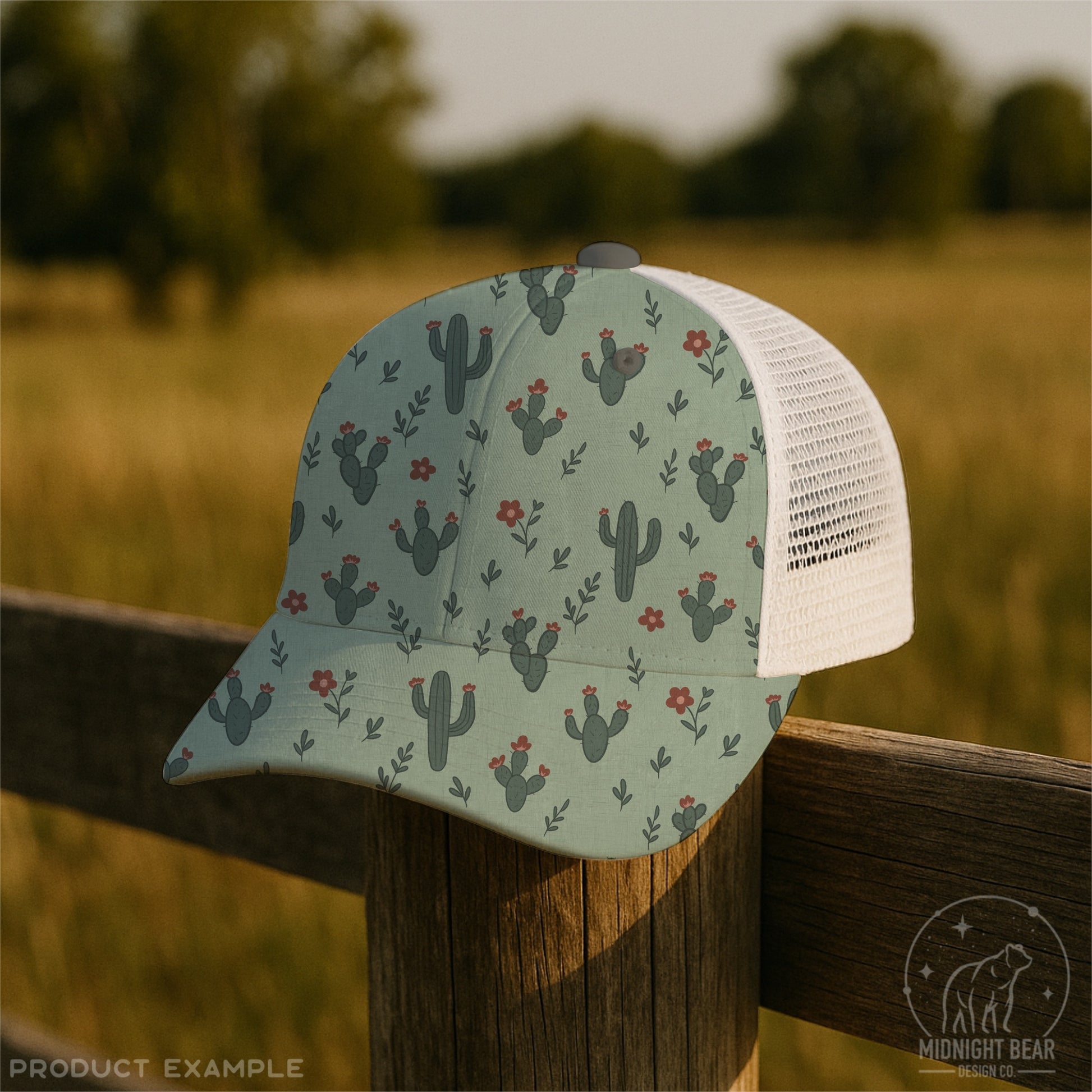 Cactus Seamless Pattern | Mint Teal Desert Floral Print | Hand-Drawn Southwest Cacti Digital Paper for Fabric, Crafts, Scrapbooking