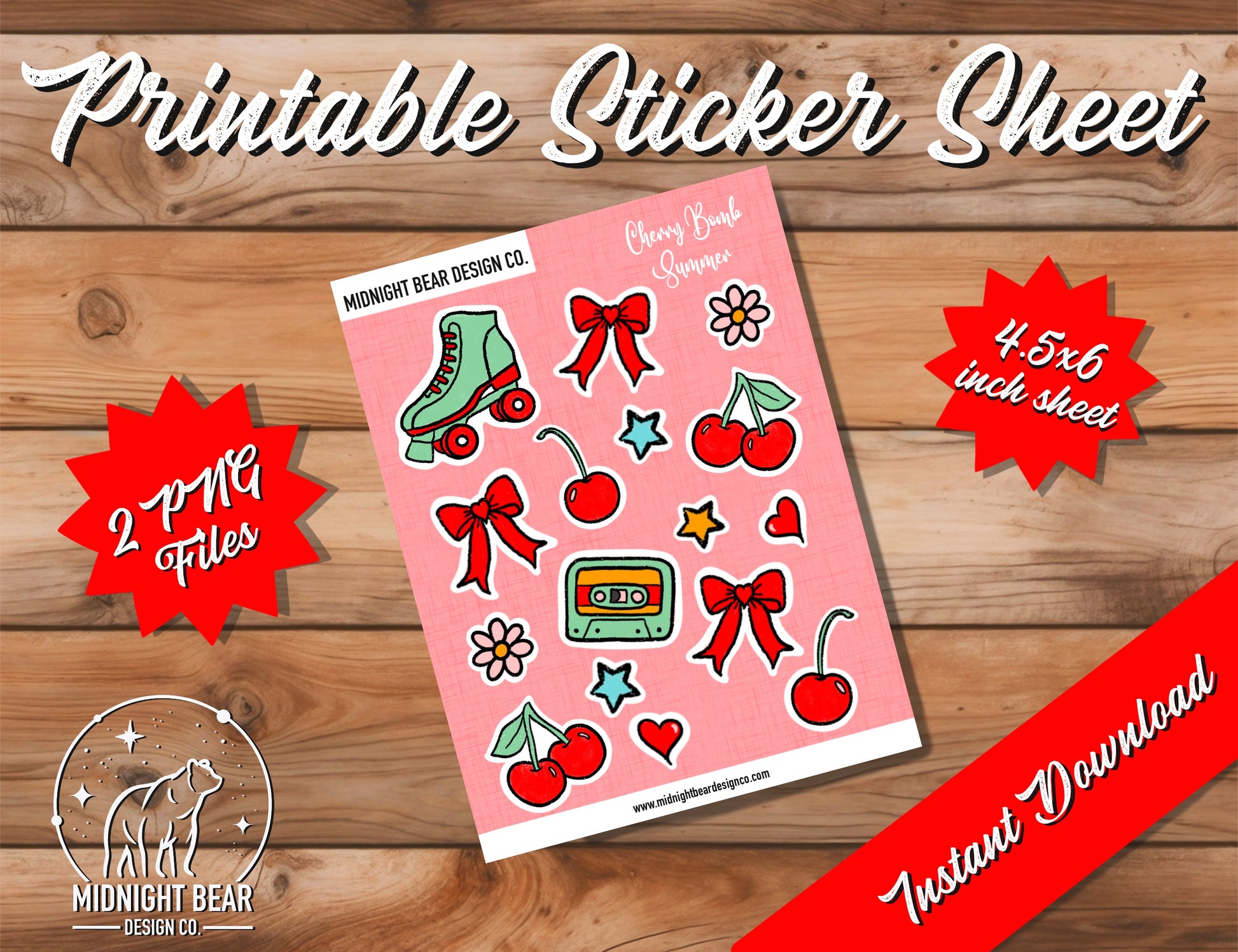 Cherry Bomb Summer Messy Coquette Printable Sticker Sheet, PNG Download