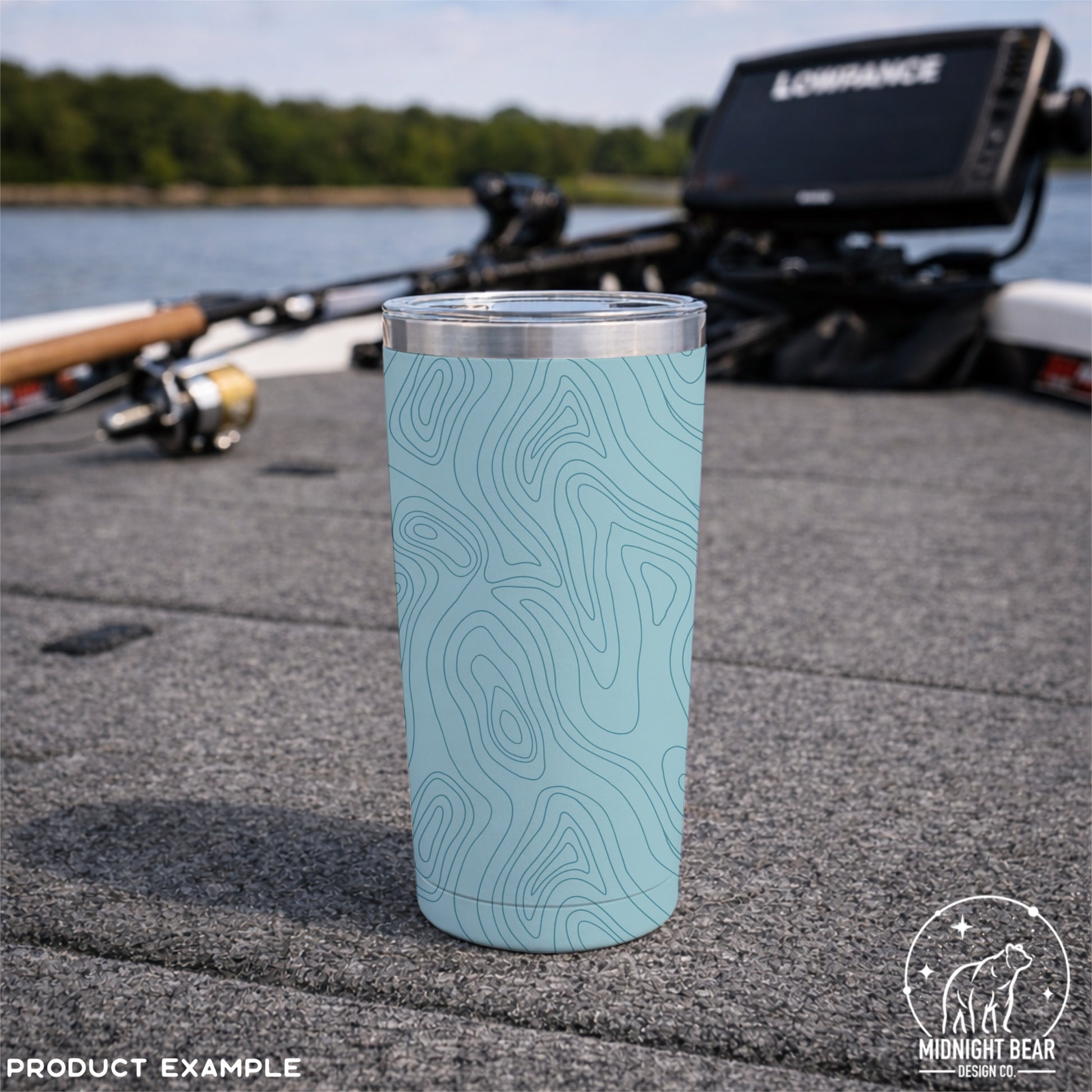 The color palette pairs a soft sky blue background with muted blue-teal contour lines, giving the pattern a light, airy feel that’s both modern and soothing. This colorway works especially well for outdoor, coastal, adventure, and minimalist themes.