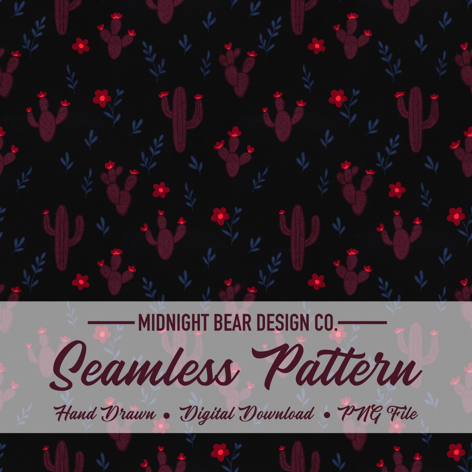 Hand Drawn Desert Sky Cactus Seamless Pattern – Boho Desert Floral PNG for Fabric, Scrapbooking, Sublimation, Instant Download Digital Paper