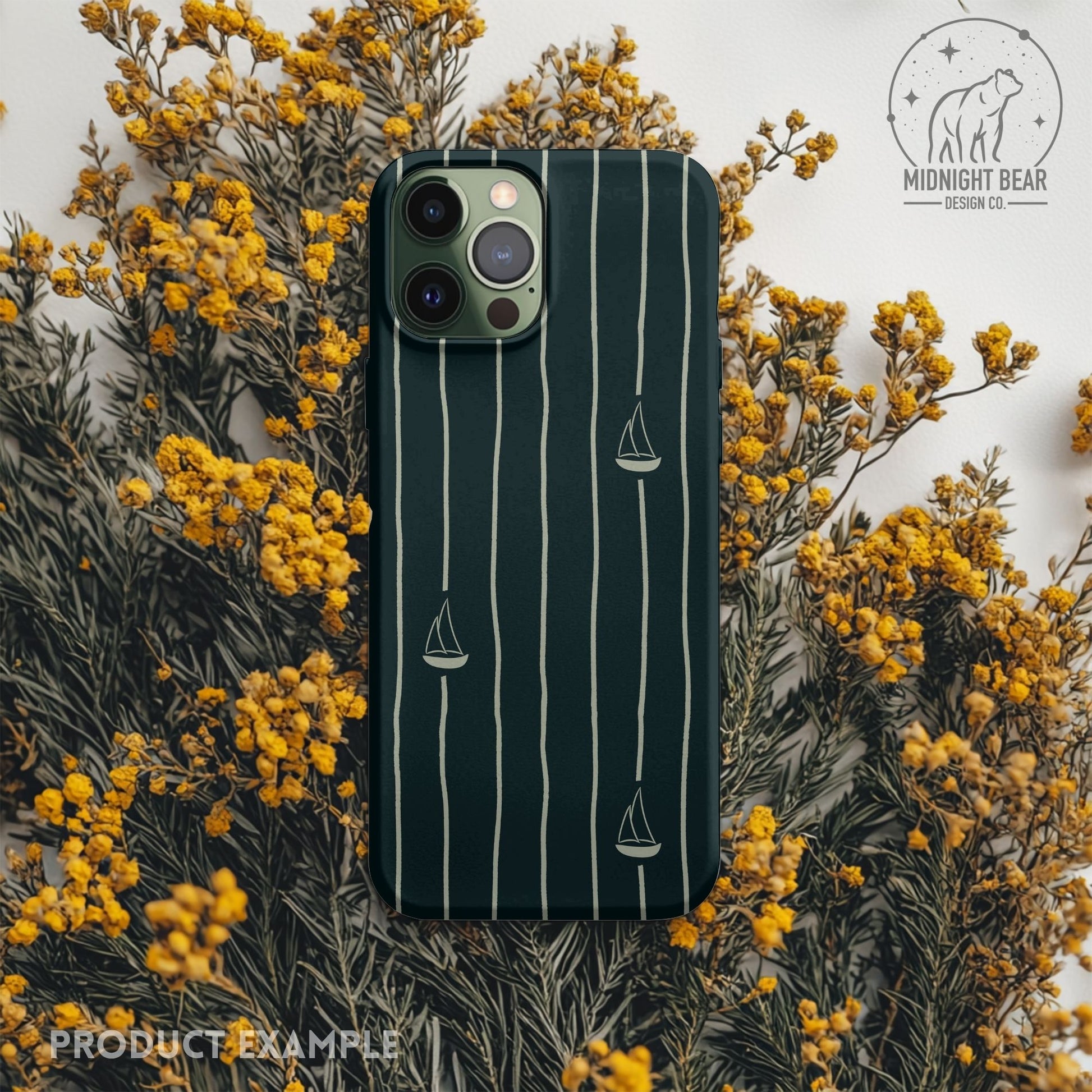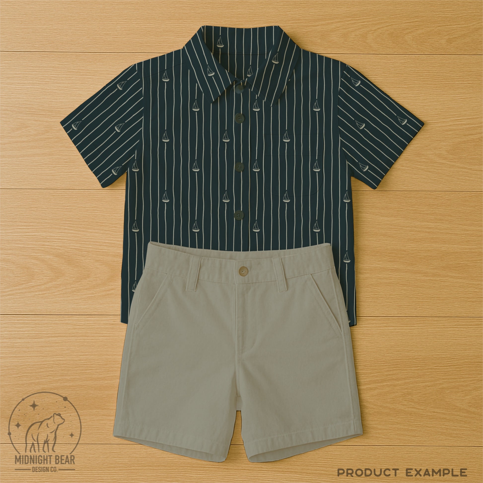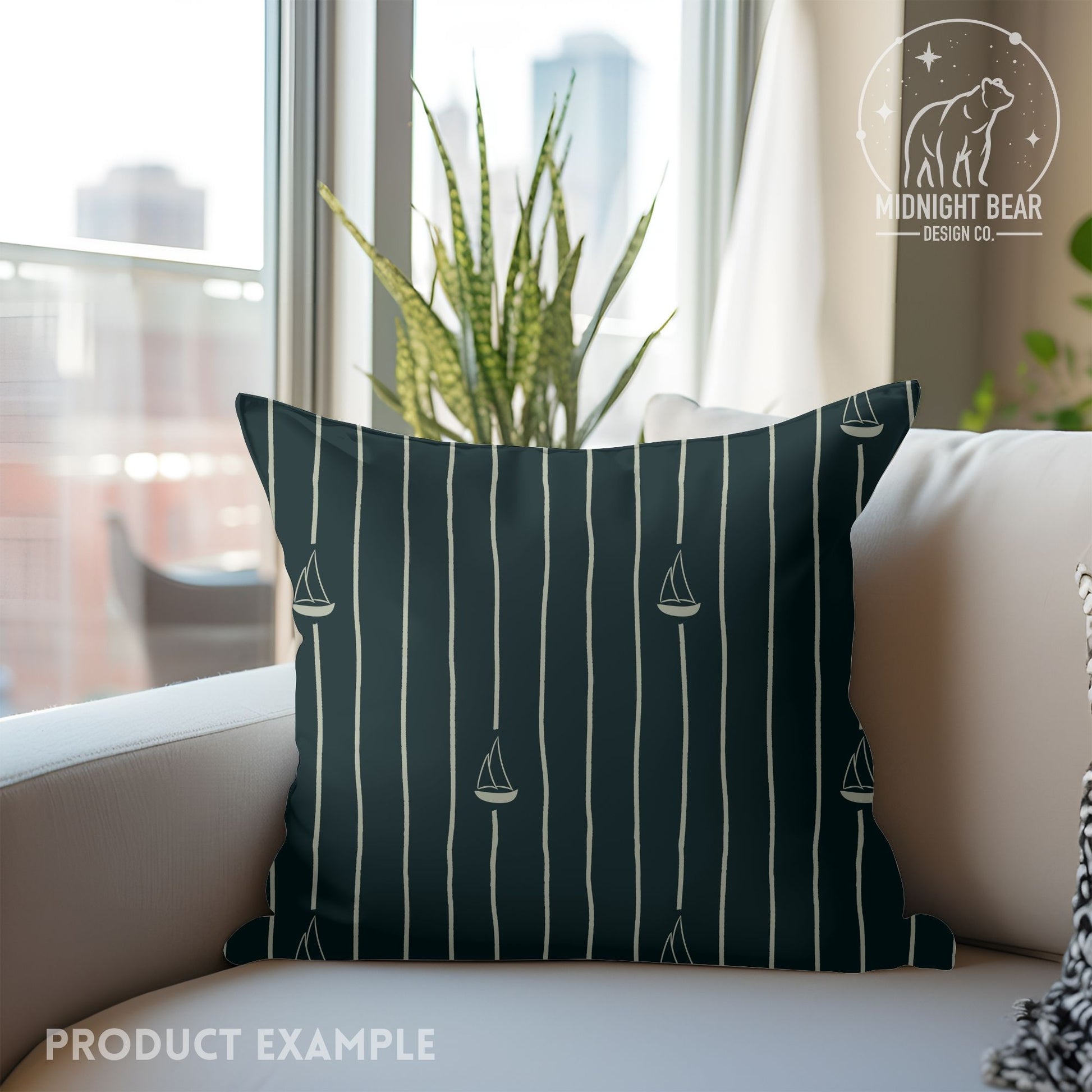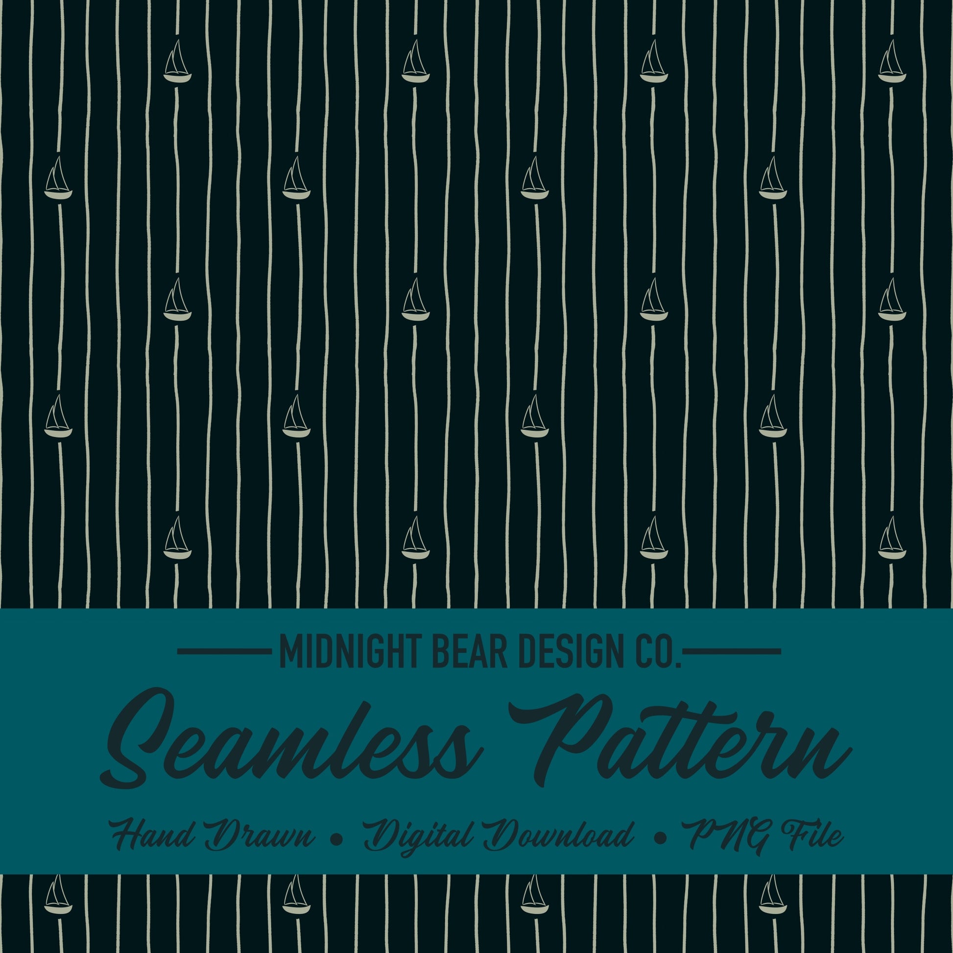 Hand drawn Sailboat Seamless Pattern, Nautical Adventure Line Art Design, Coastal Fabric, Wallpaper, Digital Paper, wavy stripe pattern
