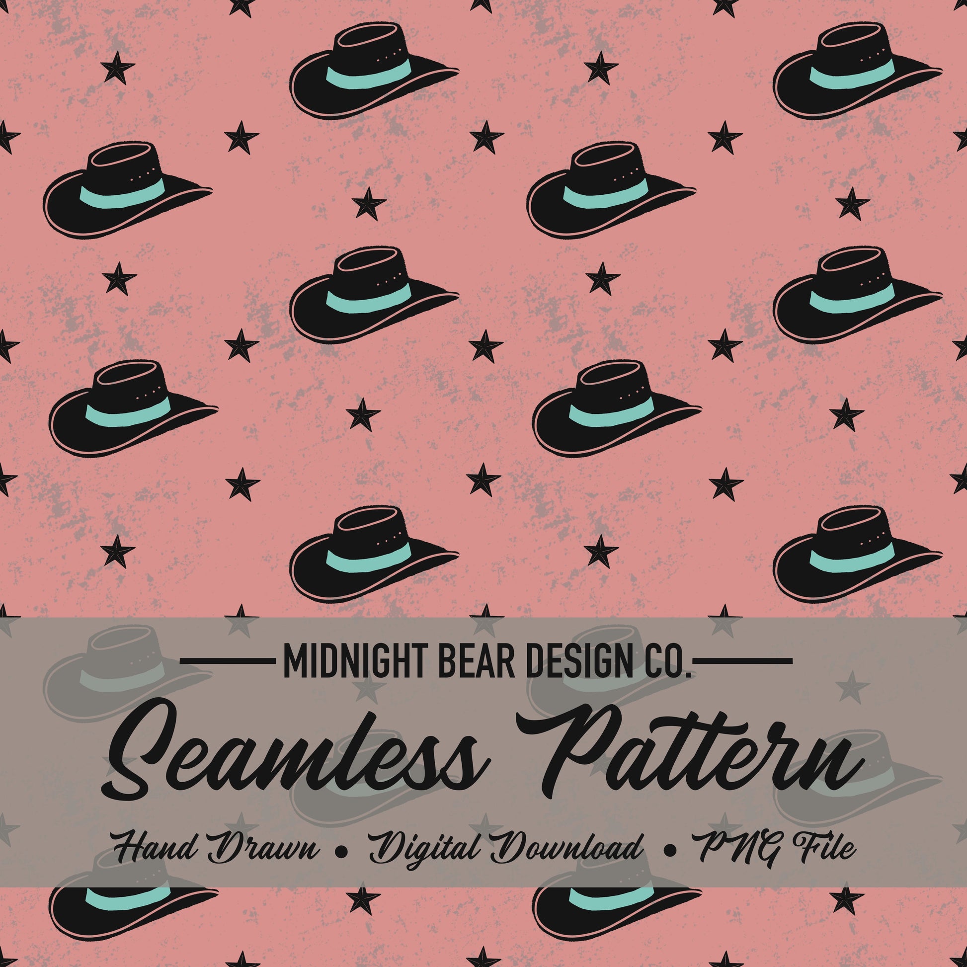 Hats and Stars in Pink Seamless Pattern Instant Digital Download
