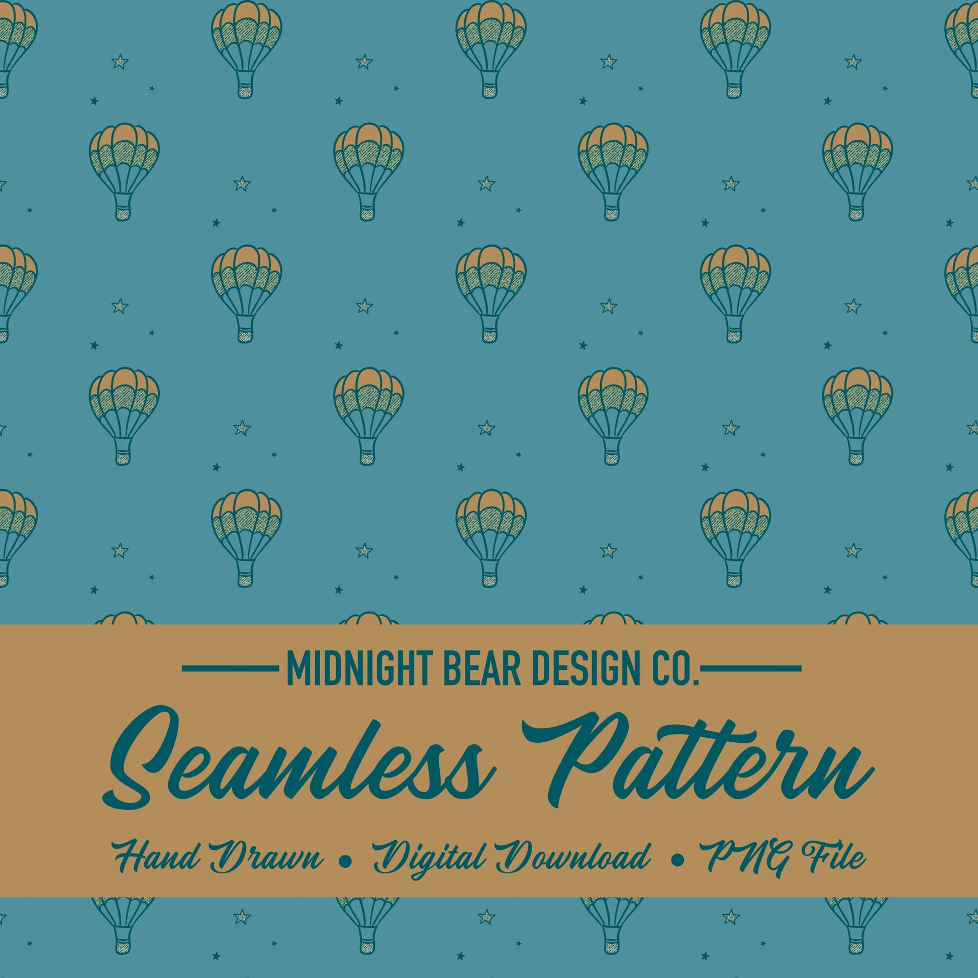 Hot Air Balloon Seamless Pattern | Blue Adventure Sky Design with Stars | Whimsical Travel Digital Paper, Fabric, or Wallpaper, Scrapbook