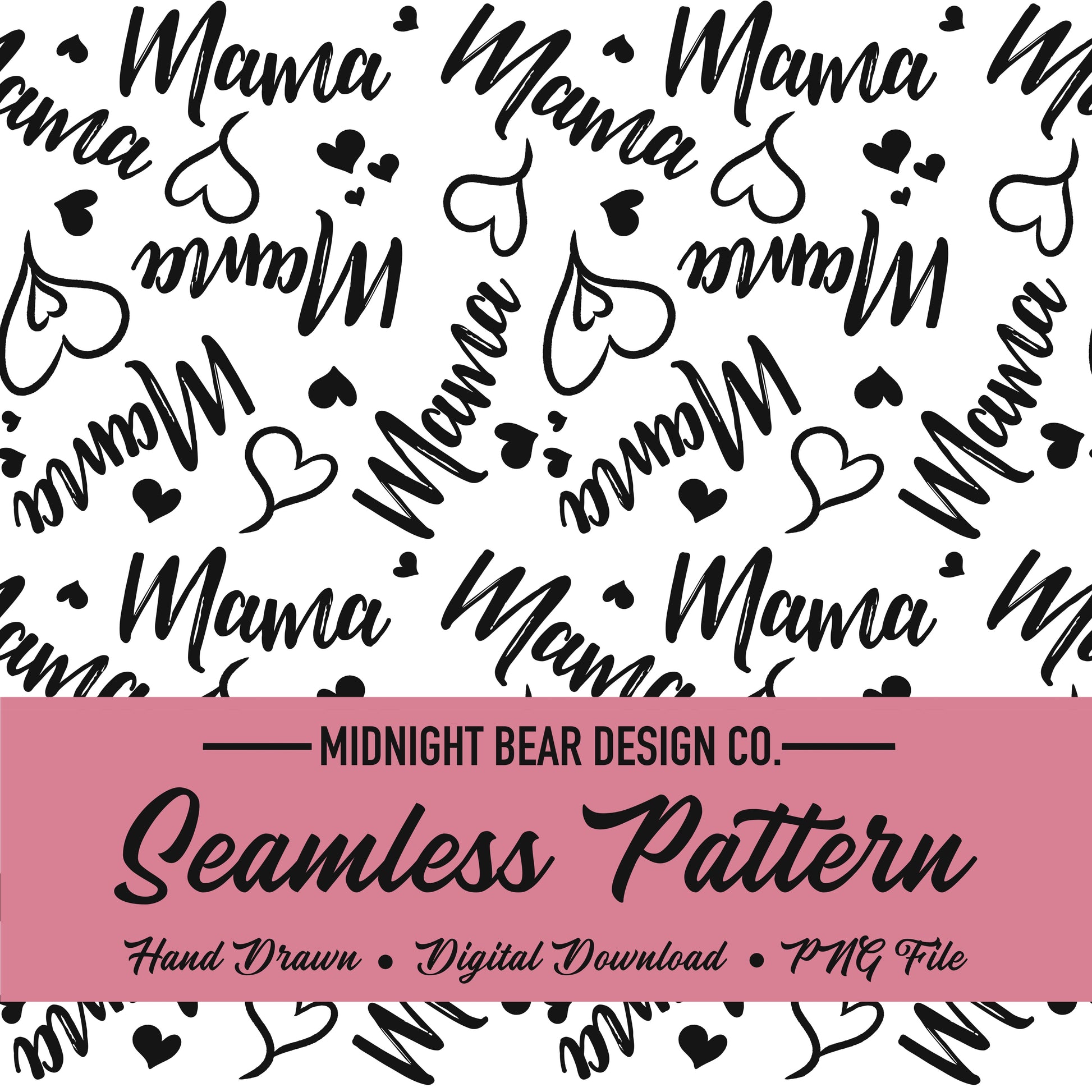 Mama Hearts Black and White Seamless Pattern Instant Digital Download