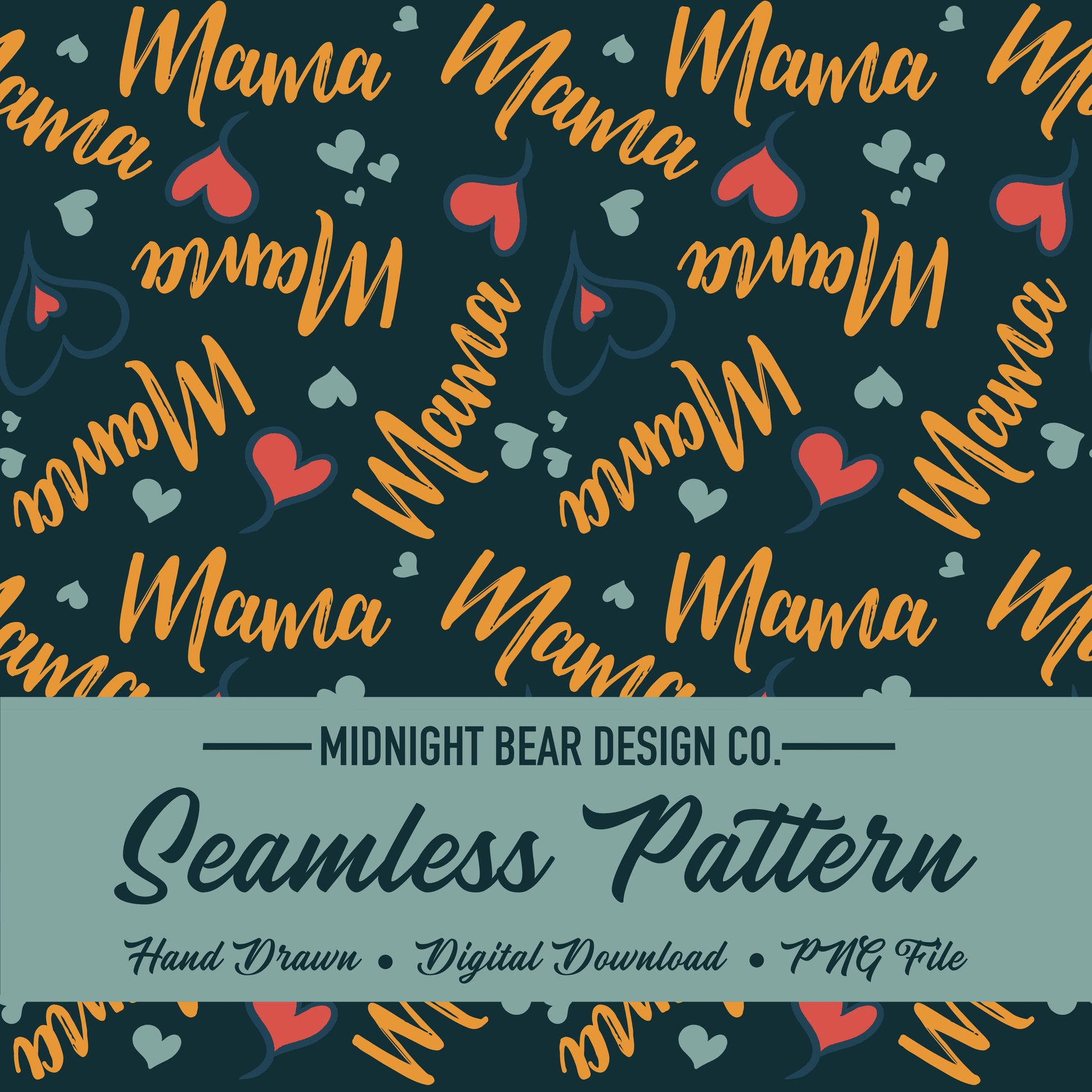 Mama Hearts Retro Seamless Pattern Instant Digital Download