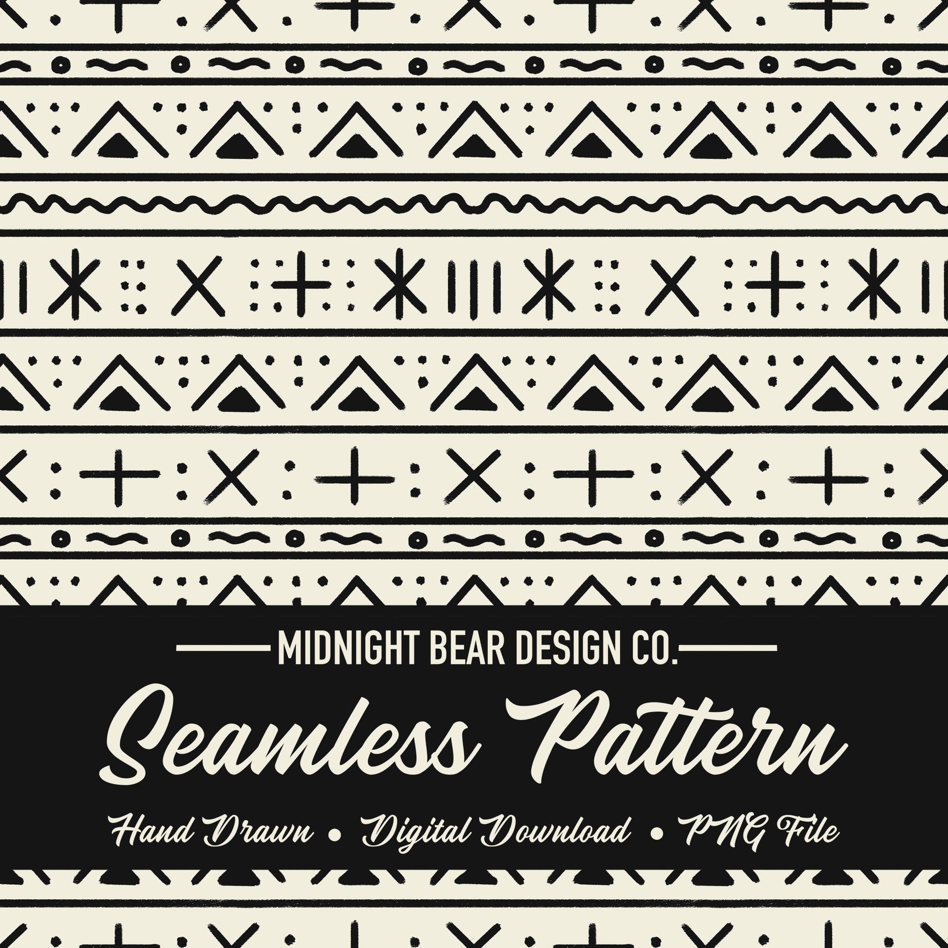 Mud Cloth Seamless Pattern | Tribal Geometric Digital Paper, African Textile Fabric Design, Modern Boho Scrapbook, Hand Drawn PNG Download