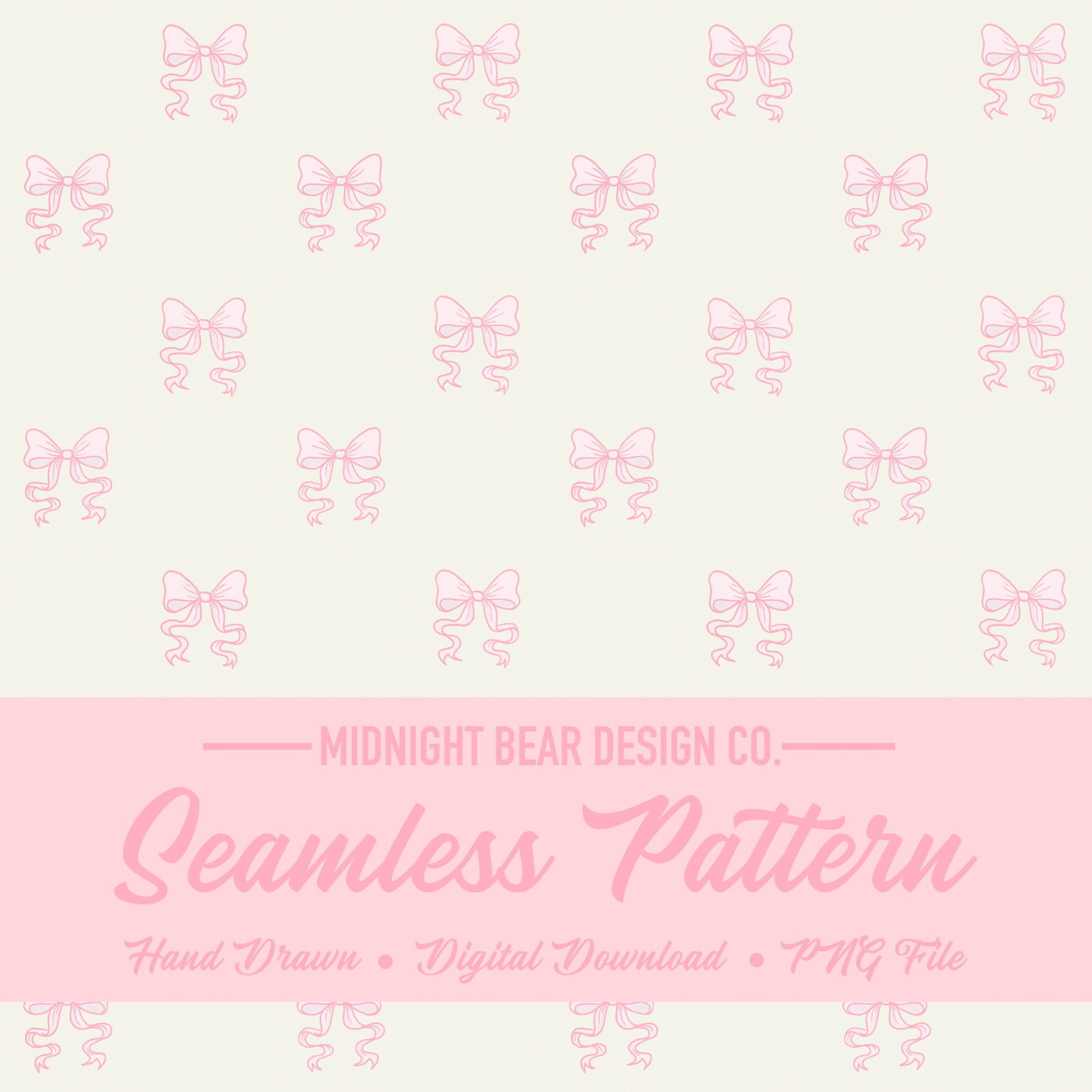 Sweet and feminine, this Pink Bow Seamless Pattern brings coquette charm to any project! Featuring delicate hand-drawn bows in soft pink on a cream background, this design captures the perfect mix of elegance and playfulness.