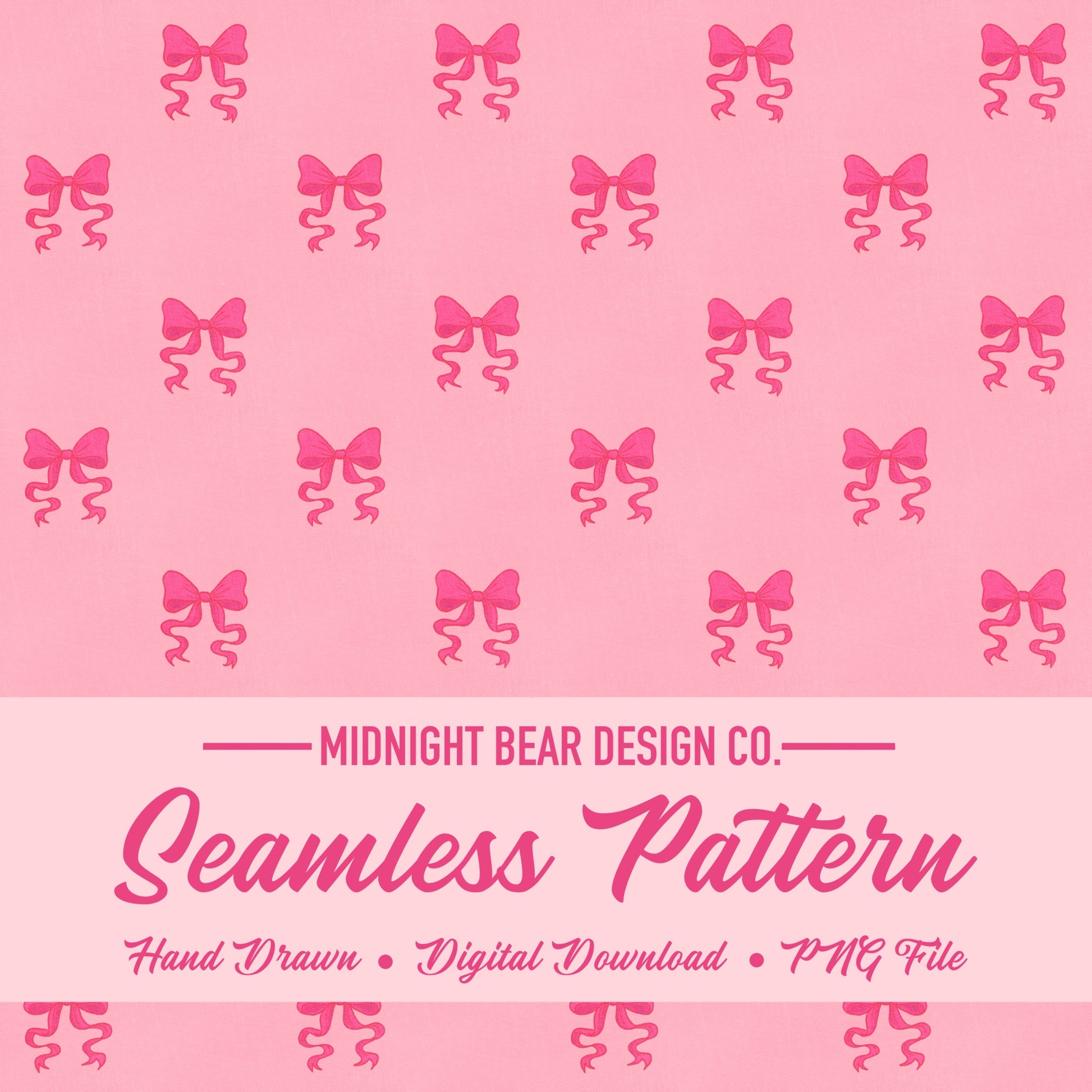 Sweet and feminine, this Pink Bow Seamless Pattern adds the perfect coquette touch to your creative projects. Featuring dainty hand-drawn bows in layered pink tones on a soft pink background, this design is both charming and playful — ideal for adding a hint of girlish elegance.